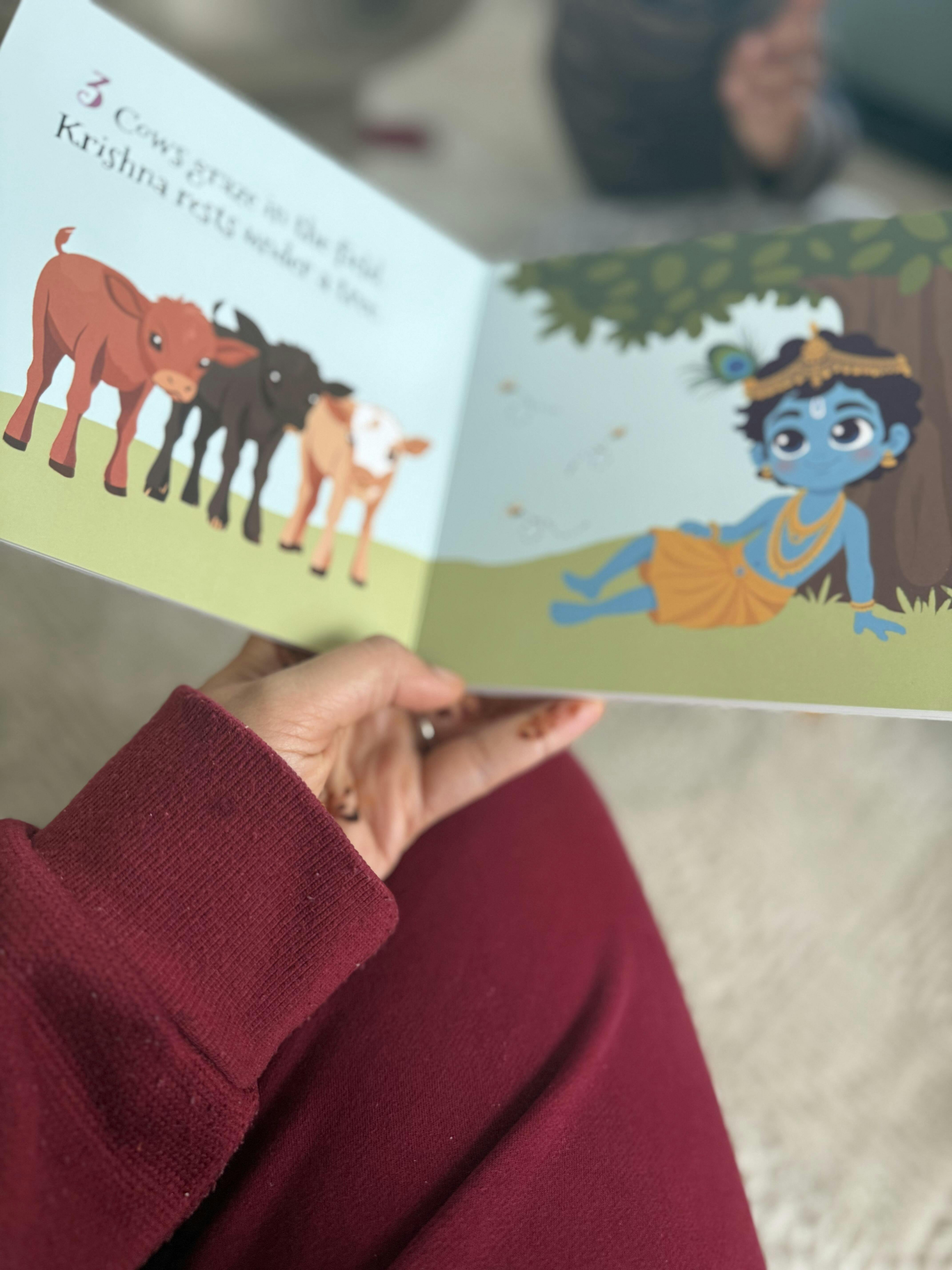 Perfect for ages 1-3, Count with Krishna blends gentle rhymes, vivid imagery, and beloved symbols from Hindu mythology to spark wonder, giggles, and early learning.
